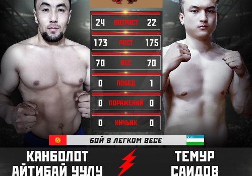 Унда вазни 70 килограмм бўлган спортчилар ўртасидаги баҳсларди ҳамюртимиз Темур Саидов қирғизистонлик Канболот Айтибай ўғли билан ўзаро рақобатлашади.