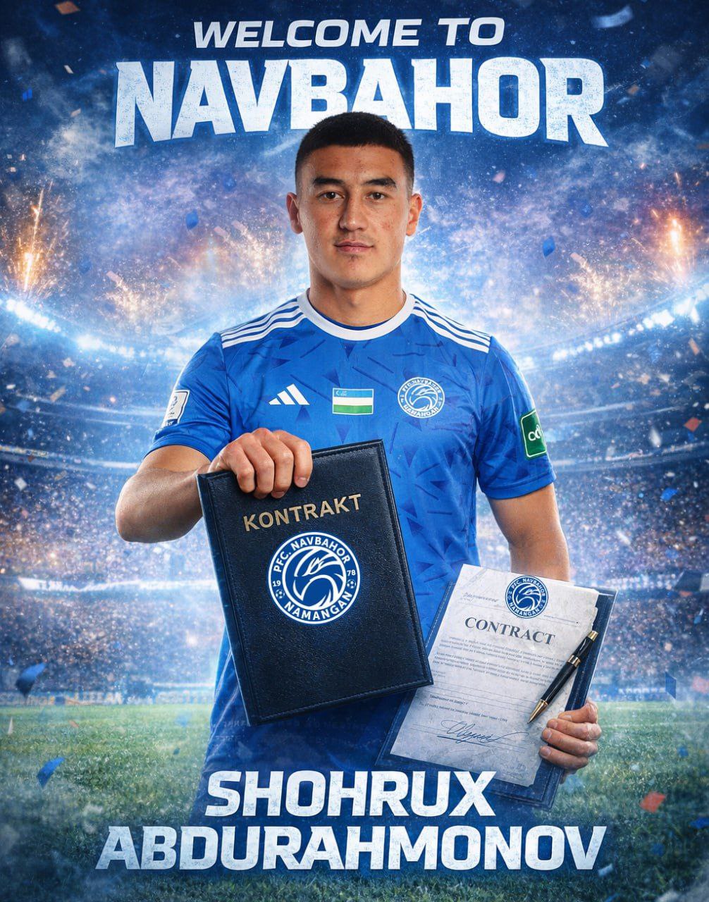 “Тажрибали ярим ҳимоячи Шоҳруҳбек Абдураҳмонов жамоамиз билан шартнома имзолади. Шоҳруҳбек Абдураҳмонов – 1999 йил, 8 март куни Тошкент вилоятининг Оққўрғон шаҳрида туғилган. Фаолияти давомида “Динамо” (Самарқанд, 2019 – 2021 йиллар, 2022 йилнинг 2-давраси), Беларуснинг “Энергетик - БГУ” (Минск, 2022 йил), “Бунёдкор” (Тошкент, 2023 йил), “Сўғдиёна” (Жиззах, 2024-2025 йиллар) жамоаларида ўйнаган. Бундан ташқари, Шоҳруҳбек Абдураҳмонов 2019 йили Ўзбекистон – U-23 таркибида 3 та ўйинда майдонга тушиб, 1 та гол урган. Якунланган мавсумда “Сўғдиёна” таркибида Суперлига ва Ўзбекистон кубоги баҳсларида жами 17 та ўйинда майдонга тушиб, 931 дақиқа ўйнаб, 2 та гол урди. Шоҳруҳбек Абдураҳмоновнинг янги мавсумда “Навбаҳор” таркибида ёрқин ўйинлар намойиш этиб, “лочинлар”нинг зафарларига ўзининг муносиб ҳиссасини қўшишига тилакдошмиз.Жамоамизда хуш кўрдик Шоҳруҳбек”, - дейилади хабарда.