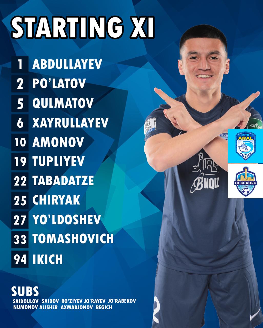 Составы на матч "Арал" - "Бухара"