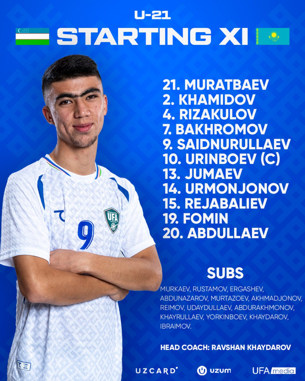 Стартовый состав сборной Узбекистана U-20 на матч против Казахстана