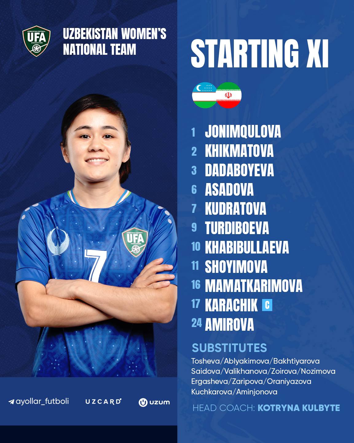 В ходе международного товарищеского матча женская сборная Узбекистана сыграет против Ирана. Стартовый состав сборной представлен ниже.
