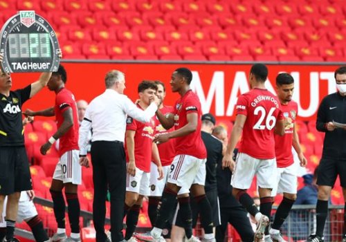 Мезбонлар устози Уле-Гуннар Сульшер ўйиннинг 80-дақиқасигача футболчи алмаштириш имкониятидан фойдаланмади, аммо кейин бешта футболчини бир имкониятда захирадан майдонга туширди.