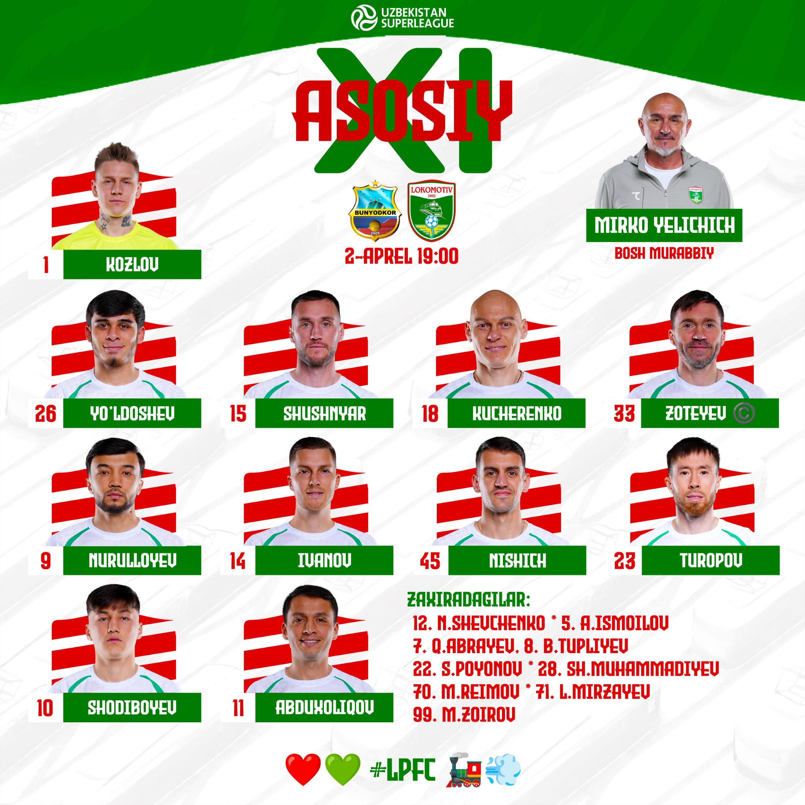 Суперлиганинг 5-туридан ўрин олган "Бунёдкор" - "Локомотив" клублари ўртасидаги беллашув бошланиш арафасида. Ушбу учрашув учун икки жамоанинг бошланғич таркиблари билан танишинг.