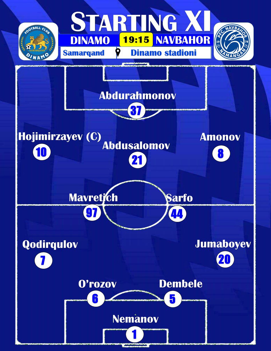 Суперлига. "Динамо" — "Навбаҳор": Бошланғич таркиблар билан танишинг