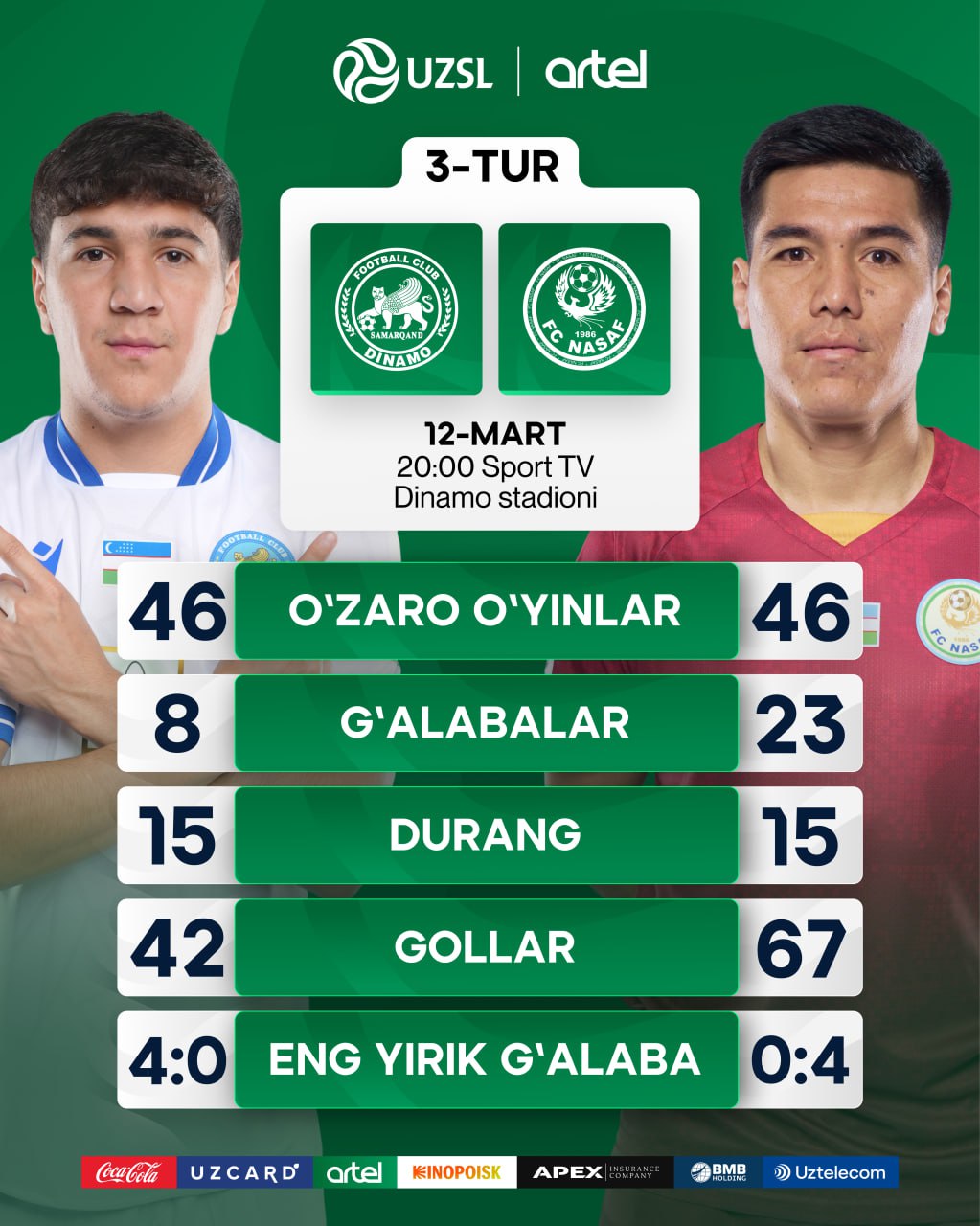 Суперлига. "Динамо" - "Насаф": Ўзаро учрашувларда устунлик ким томонда?