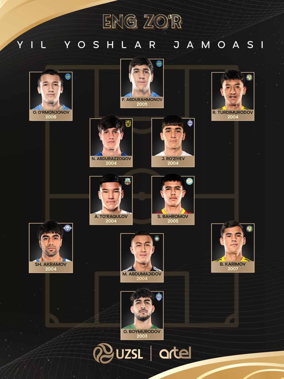 УзПФЛ Суперлиганинг бу мавсумидаги энг яхши ёш футболчиларидан иборат рамзий терма жамоани эълон қилди.