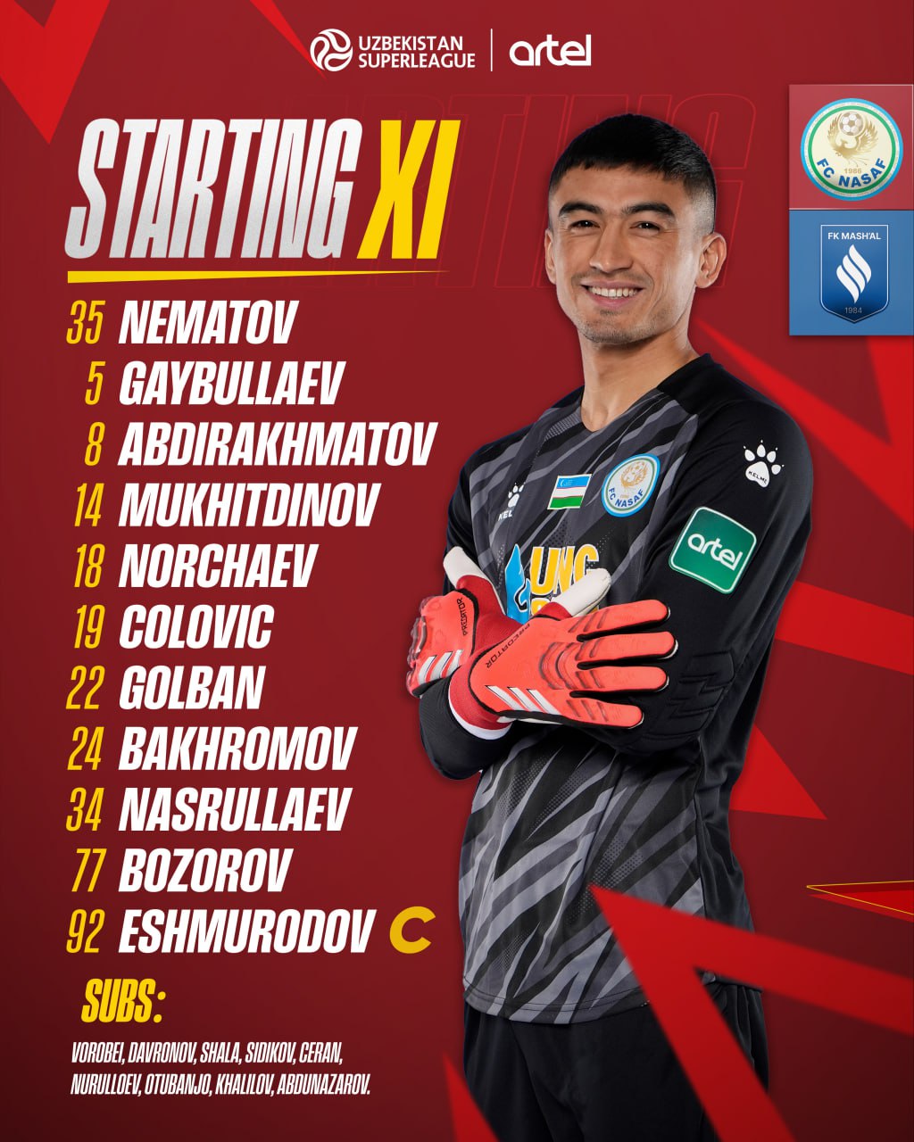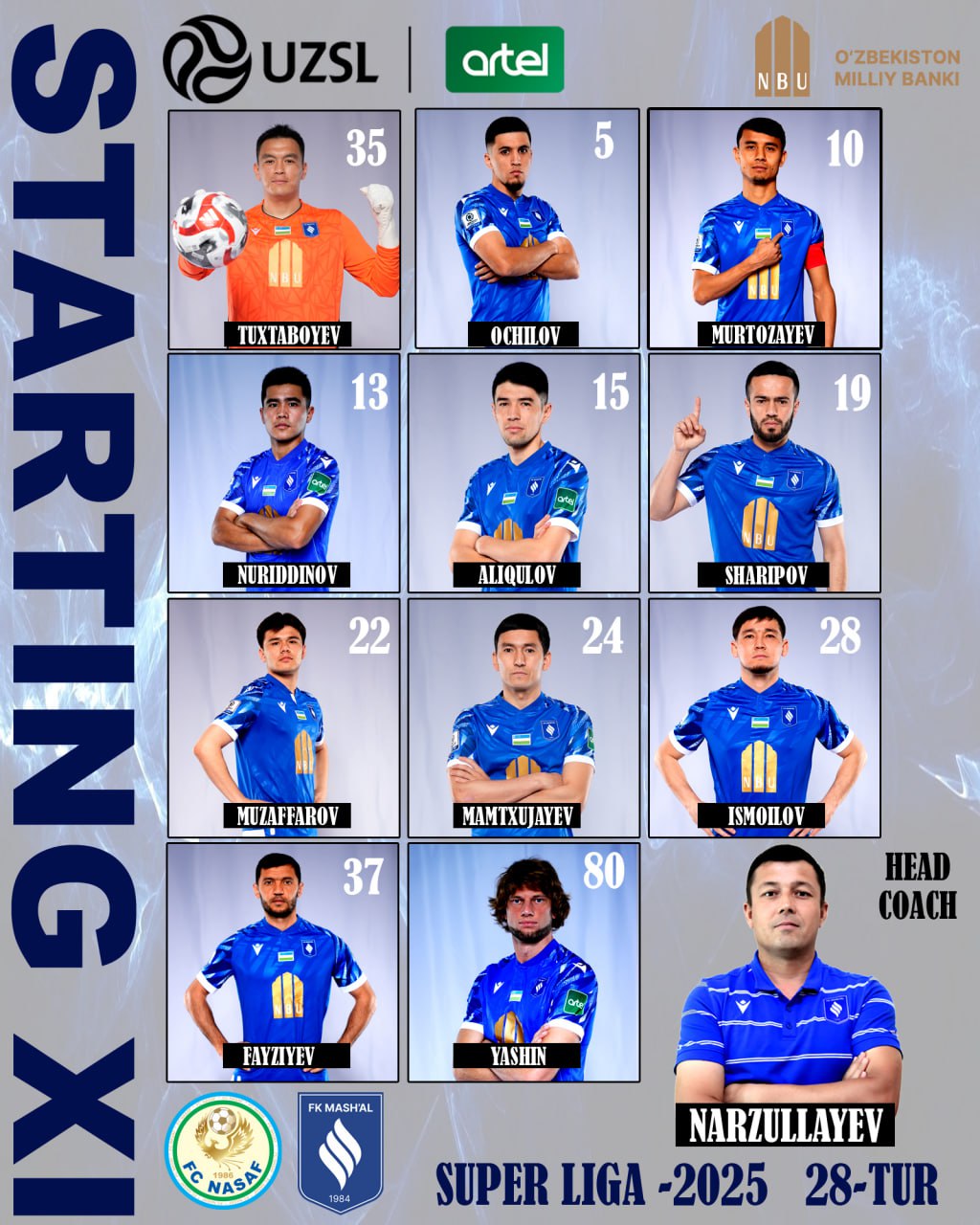 Ўзбекистон Суперлигаси 28-туридан ўрин олган "Насаф" - "Машъал" учрашуви учун жамоалар ўз таркибларини эълон қилишди.
