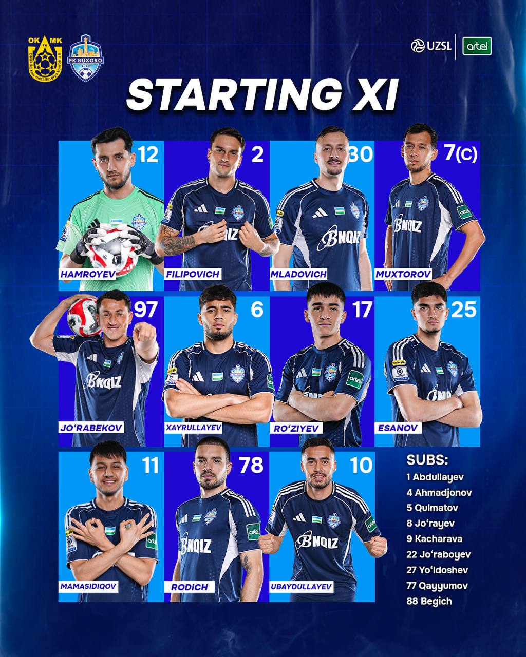 Суперлига. ОКМК - "Бухоро": Таркиблар билан танишинг