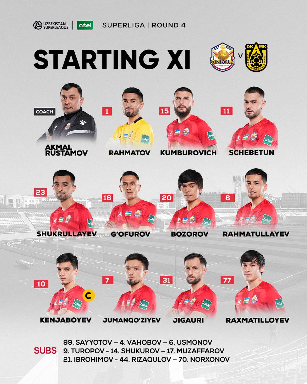 Ўзбекистон Суперлигаси 4-туридан ўрин олган “Қизилқум” — ОКМК учрашуви учун жамоаларнинг бошланғич таркиблари билан танишинг. Баҳс 20:00да старт олади.