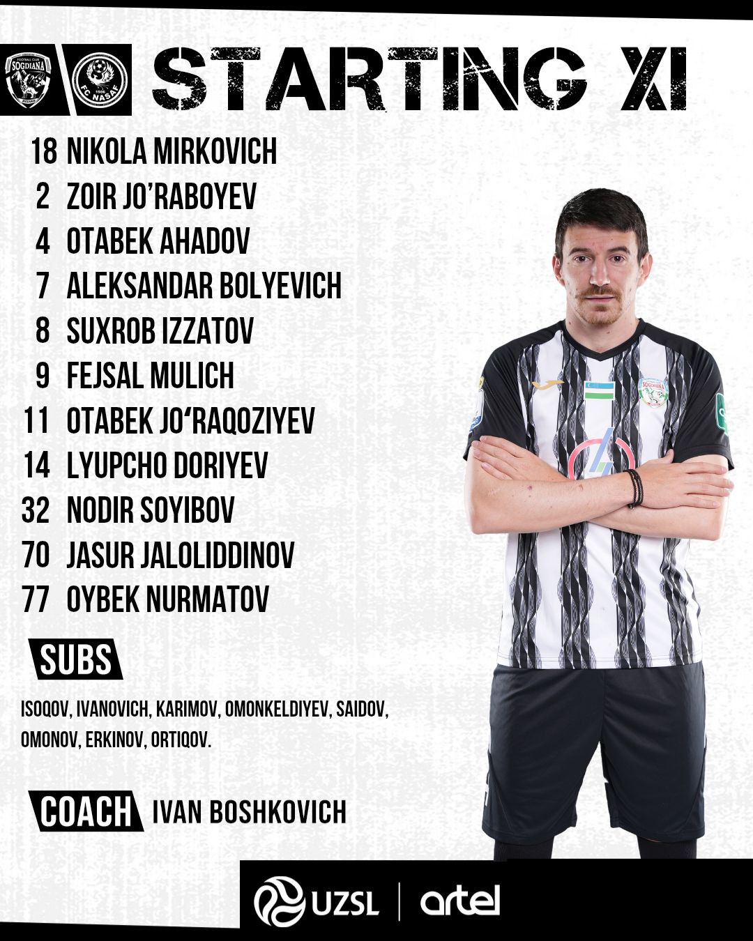 Суперлиганинг 2-туридан ўрин олган “Сўғдиёна” ва “Насаф” жамоалари ўртасидаги учрашув бошланиш арафасида, Ушбу беллашув олдидан иккала жамоанинг бошланғич таркиби билан танишинг.