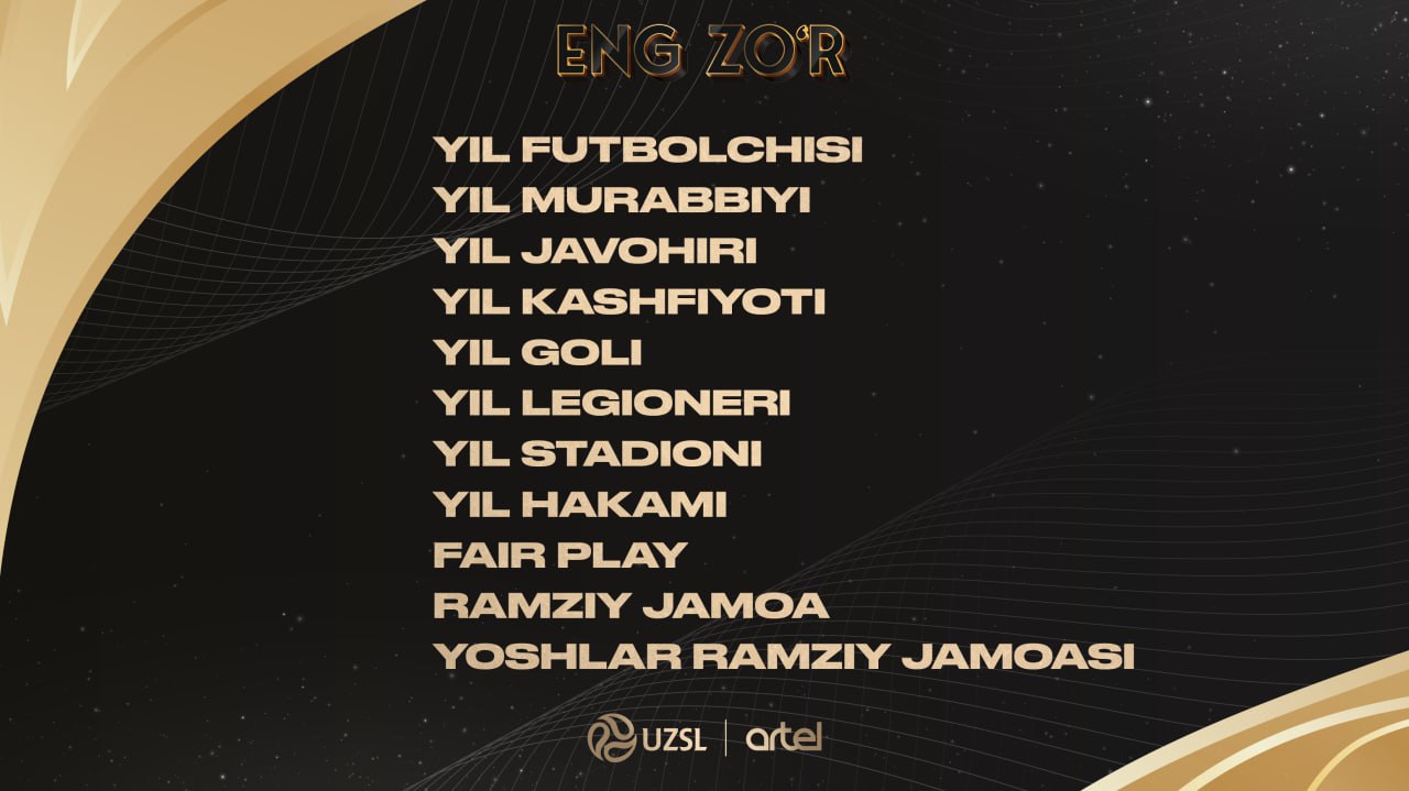 Суперлигада 2025 йилги мавсум якунига оз фурсат қолмоқда ва турли йўналишлар бўйича энг яхшиларни аниқлаш жараёни бошланди. Бу йил 9 номинация бўйича лауреатлар аниқланади.