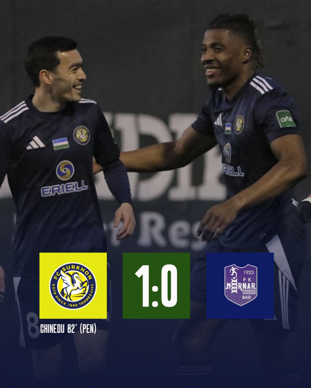 “Сурхон” жамоаси навбатдаги назорат учрашувида Черногориянинг “Морнар Бар” жамоасига қарши майдонга тушиб, 1:0 ҳисобида ғалаба қозонди. Беллашувдаги ягона гол Стивен Чинеду томонидан киритилди.