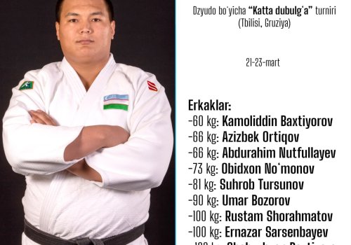 21-23 март кунлари Грузия пойтахтида дзюдо бўйича “Катта дубулға” таснифига кирувчи мусобақа бўлиб ўтади. 54 мамлакатдан 400 нафардан ортиқ спортчи қатнашадиган мазкур мусобақада Ўзбекистон терма жамоаси ҳам катта таркибда иштирок этади.