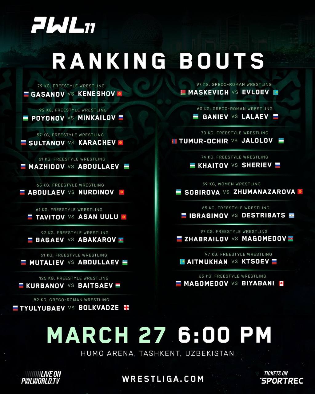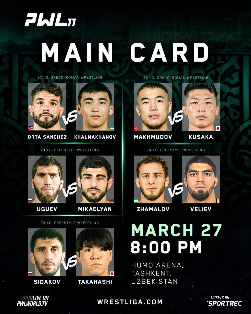 Бугун соат 18:00 да Тошкент шаҳридаги "Ҳумо арена" мажмуасида Профессионал Кураш Лигаси — "PWL 11" турнири бўлиб ўтади.