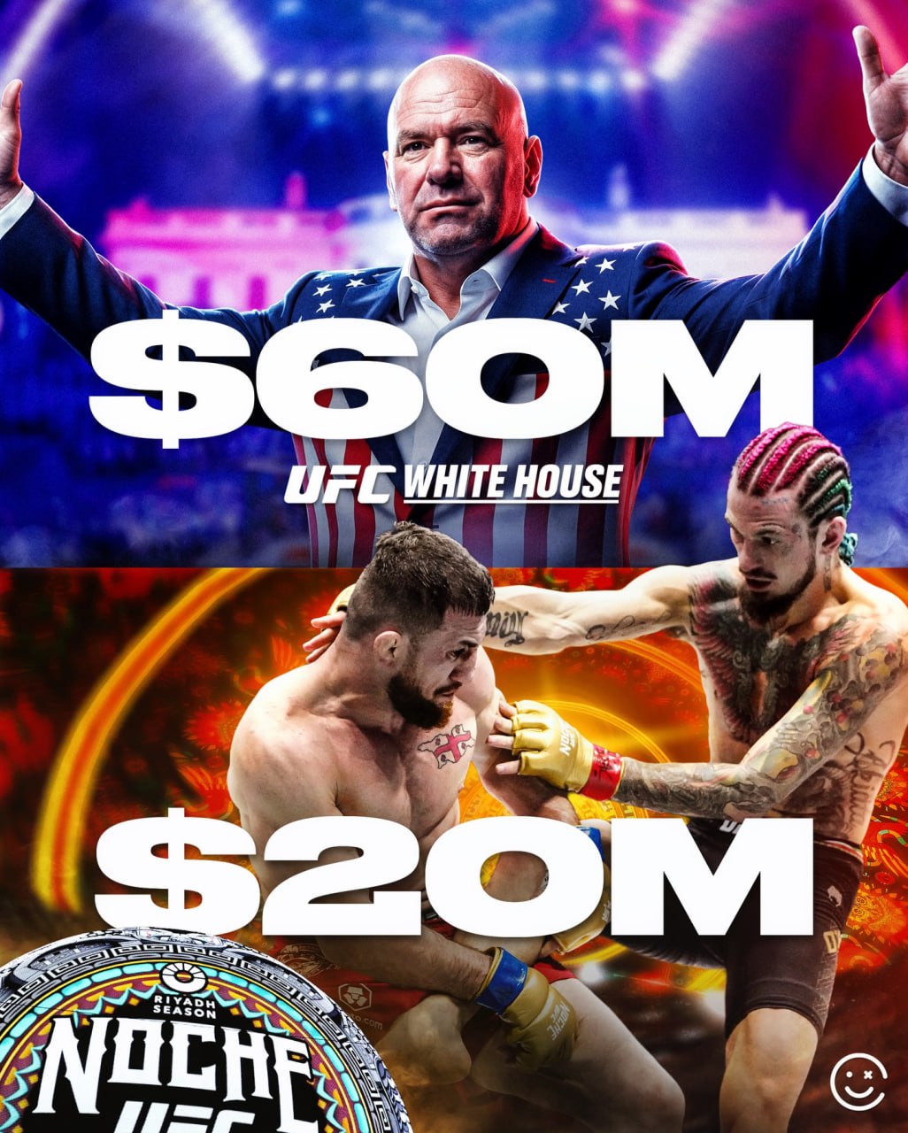 Маълумотларга кўра, промоушен мазкур оқшом учун 60 миллион доллар сарфлашга тайёр. Бу лига тарихидаги энг катта сумма бўлиши кутиляпти. Ҳозирга қадар рекорд 20 миллион долларни ташкил этади. У ҳам бўлса, "UFC 306" турнирида сарфлаган.