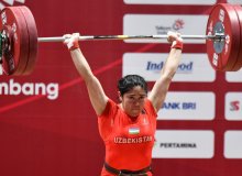 Osiyo o‘yinlari. Og‘ir atletika. Omadoy Otaqo‘zieva hisobimizga navbatdagi kumush medalni qo‘shib qo‘ydi
