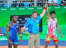 Erkin kurash: Davit Modzmanashvili muddatidan avval chorak final yo‘llanamasini qo‘lga kiritdi
