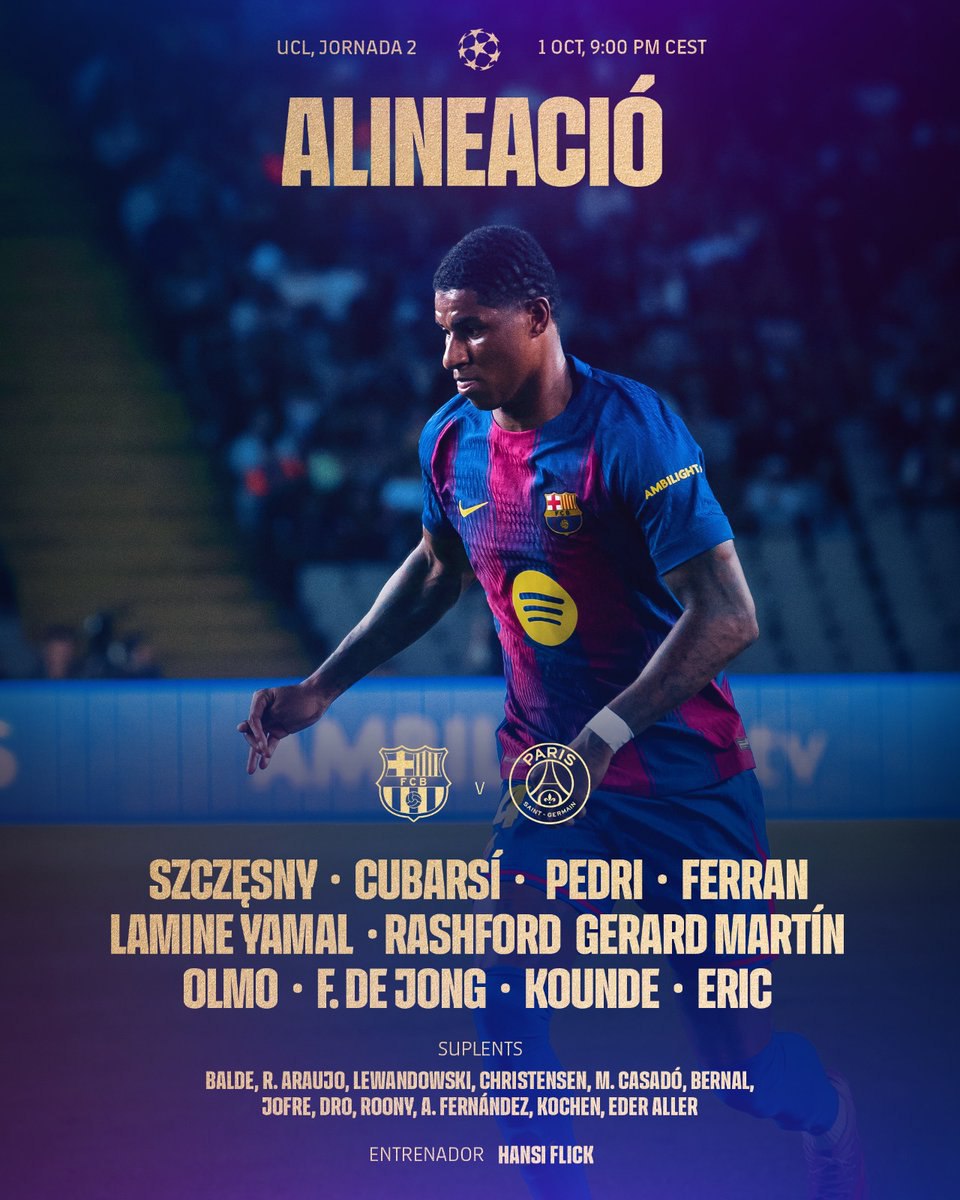 Chempionlar ligasining 2-turidan o‘rin olgan "Barselona" va PSJ jamoalari o‘rtasidagi markaziy bahs birozdan so‘ng boshlanadi. Mazkur uchrashuv uchun kataloniyaliklar va parijliklar asosiy tarkibini e’lon qilindi.