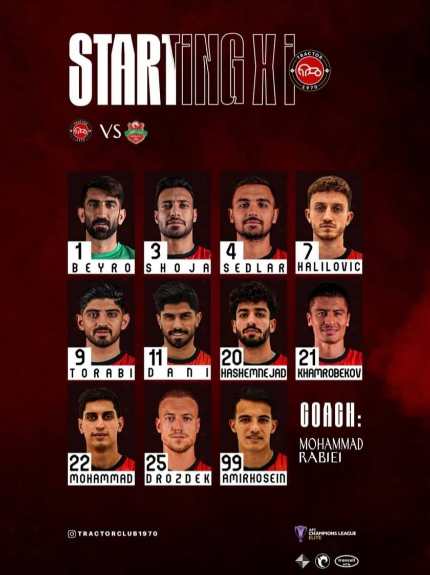 Elit Osiyo Chempionlar Ligasi 1/16 final bosqichidan o‘rin olgan “Traktor” — “Shabab Al-Ahli” uchrashuvi uchun Eron klubining asosiy tarkibi bilan tanishing. Legionerimiz Odilbek Hamrobekov maydonda ilk daqiqalardan harakat qiladi.