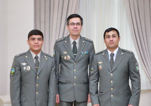 O‘zbekiston Respublikasiga xizmat qilaman! Leytenant Ahmadaliev va leytenant G‘oibnazarov.