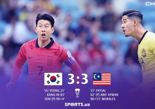 Osiyo kubogining 3-turidan o‘rin olgan Janubiy Koreya - Malayziya uchrashuvi 3:3 hisobi bilan tugadi.