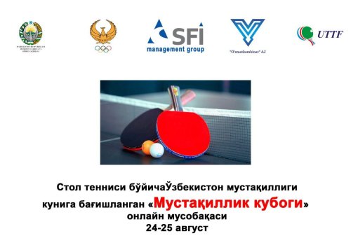 Joriy yilning 24-25 avgust kunlari Mustaqilligimizning 29 yilligi munosabati bilan stol tennisi bo‘yicha kattalar o‘rtasida “Mustaqillik kubogi” o‘tkaziladi.