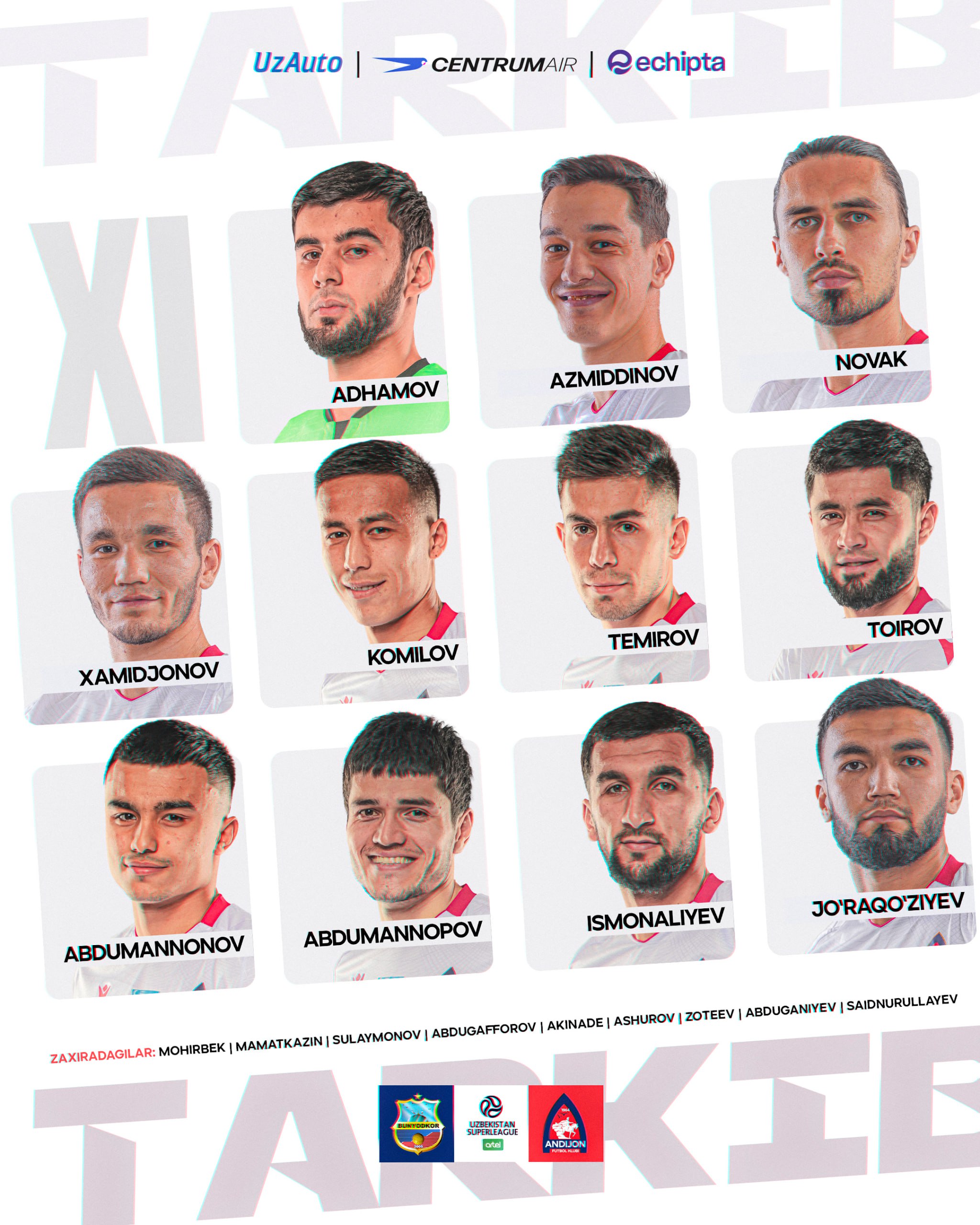 "Bunyodkor": Abdumavlon Abdujalilov, Najmiddin Normurodov, Muzaffar Olimjonov, Narimonjon Ahmadjonov, Marko Bugarin, Nikoloz Mali, Azizbek To‘lqinbekov, Itsuki Urata, Nosirjon Abdusalomov, Temurxo‘ja Abduxoliqov, Amir To‘raqulov.