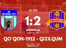 Hozirgina O‘zbekiston Superligasi 22-turidan o‘rin olgan "Qo‘qon-1912" hamda "Qizilqum" jamoalari o‘rtasidagi o‘yin o‘z nihoyasiga etdi.