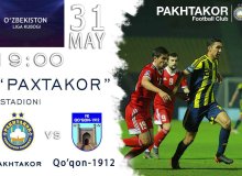 31 may kuni "Paxtakor" Liga Kubogi doirasida "Qo‘qon-1912" bilan maydonga tushadi
