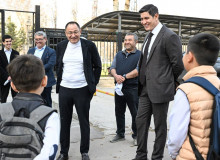 Руководство Министерства спорта и Национального Олимпийского комитета продолжает ознакомление с условиями для занятий спортом в образовательных учреждениях столицы.