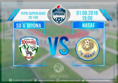 В 20-туре “Насаф” встретится в Джизаке с "Согдианой". Встреча пройдет 1 августа в 19:00 на стадионе "Согдиана".
