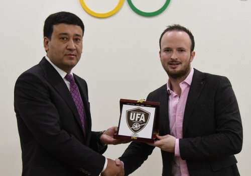 По завершении встречи Умид Ахматджанов вручил гостю памятные сувениры от имени Ассоциации футбола Узбекистана.