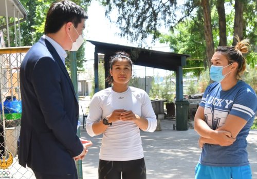 Так как, представители основного состава сейчас принимают участие на лицензионных соревнованиях в Токио и Паттайе, на базе находятся члены молодёжной сборной, резервный состав и лицензиаты Токио-2020. Во время осмотра созданных условий, были выявлены некоторые проблемы по поводу коммунальной системы и ежедневного рациона питания. В свою очередь, Ойбек Касымов дал строгие поручения пересмотреть питание спортсменов и обогатить меню калорийными блюдами, решения существующих проблем и повышения духовности и культуры у спортсменов.