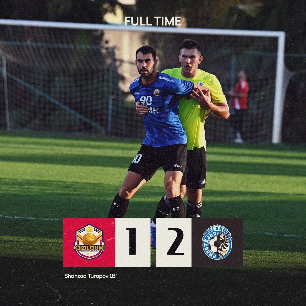 В заключительном матче сборов в Турции «Кызылкум» сыграл против клуба из Чехии «Простеёв» и проиграл со счетом 1:2. Единственный гол в составе «Кызылкума» забил Шахзод Туропов.