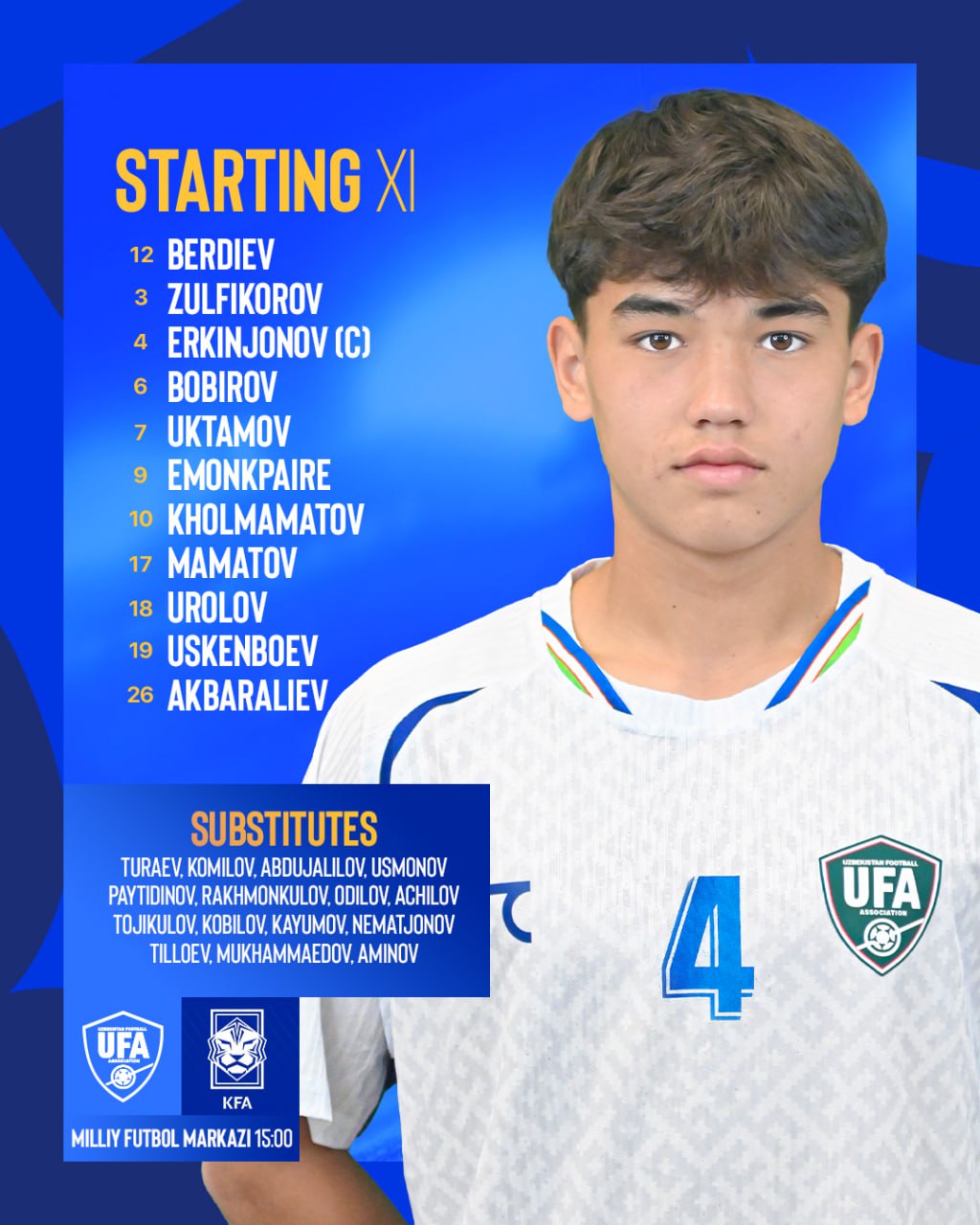 Ўзбекистон U-15 терма жамоасининг Жанубий Кореяга қарши асосий таркиб маълум
