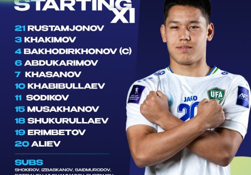 В ходе четвертьфинала Кубка Азии U-17 сборная Узбекистана сыграет сегодня против Объединённых Арабских Эмиратов. Стартовый состав нашей сборной представлен ниже.