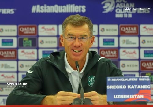 Главный тренер сборной Узбекистана Сречко Катанец и капитан команды Элдор Шомуродов приняли участие в предматчевой пресс-конференции.