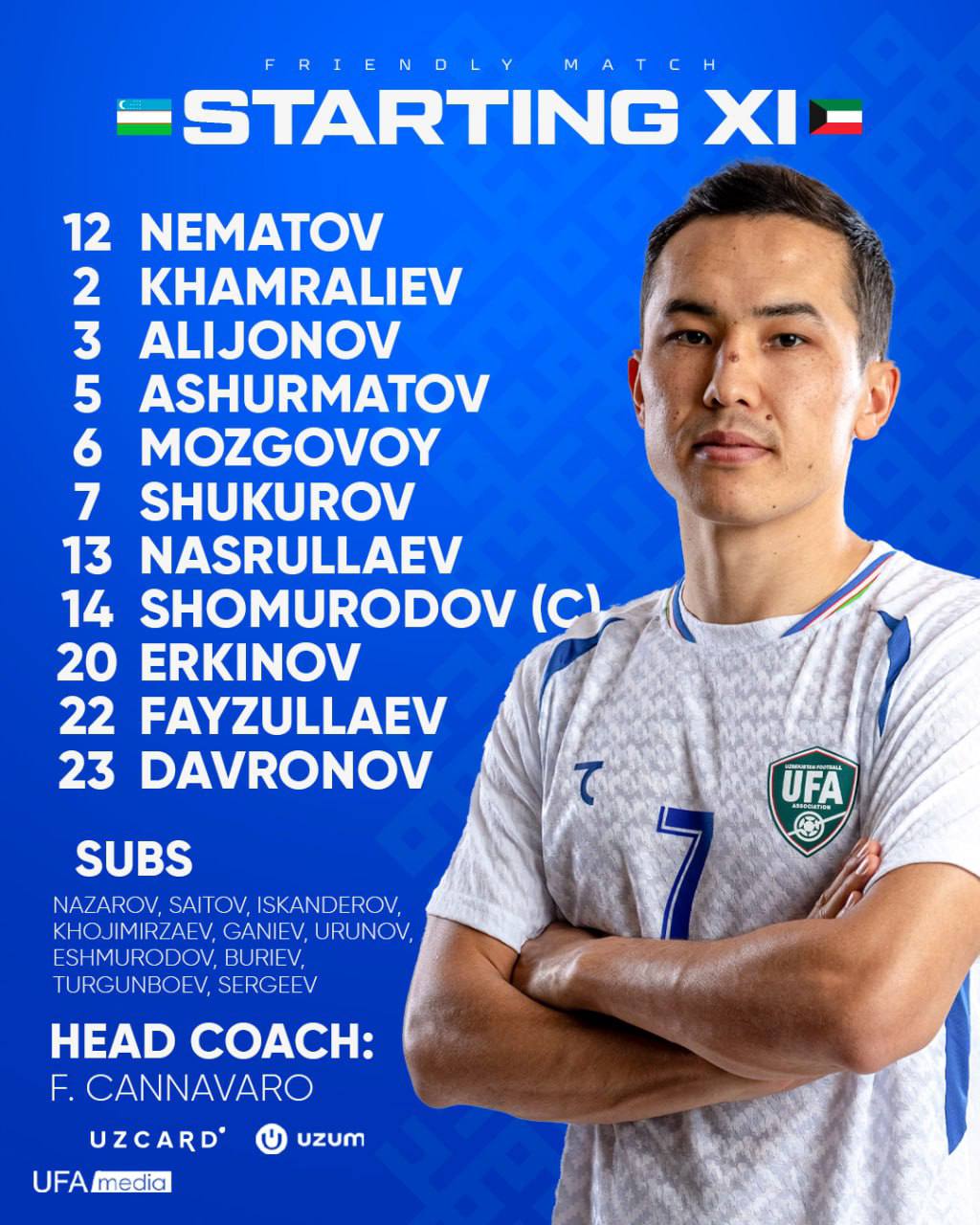 В 18:00 стартует товарищеский матч между сборными Узбекистана и Кувейта. Стартовый состав нашей сборной представлен ниже.