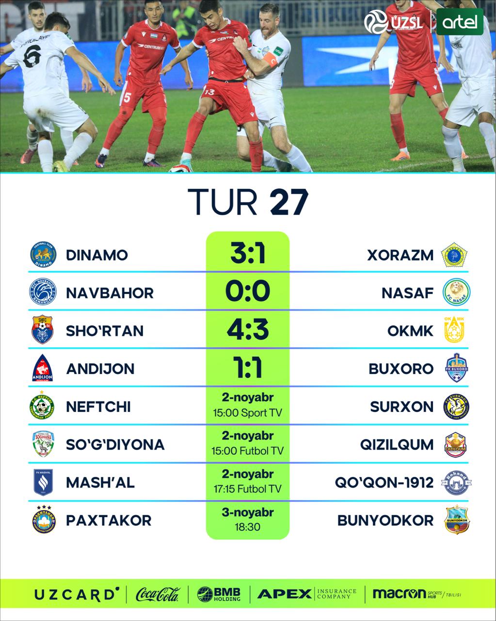 Дастлабки ўйин Фарғонада бўлиб ўтади. Унда "Нефтчи" жамоаси "Сурхон" билан курашади. Баҳс 15:00да старт олади.