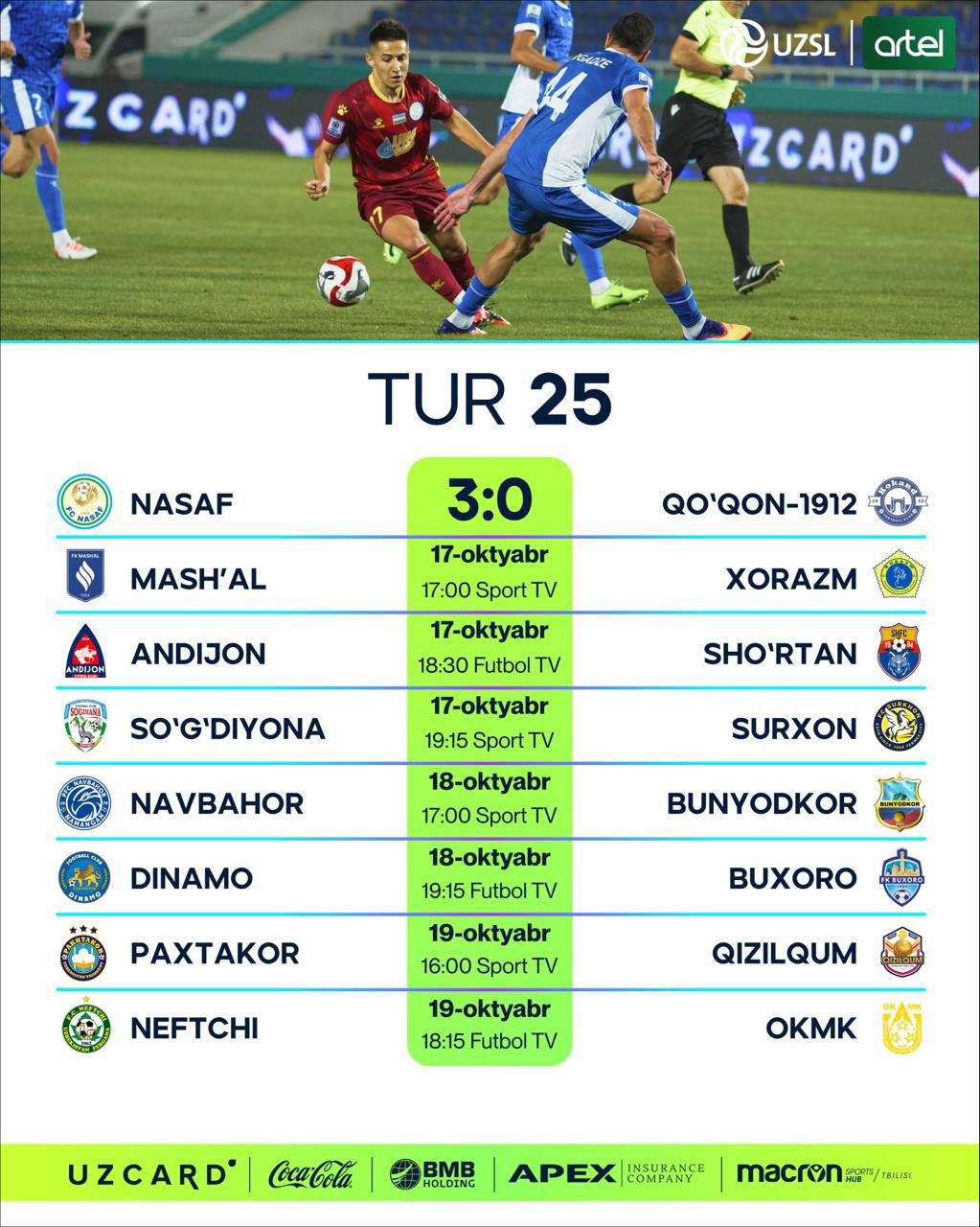 Суперлига 25-тури давом этади. Бугун мухлислар 3 та қарама-қаршилик гувоҳи бўлишади.