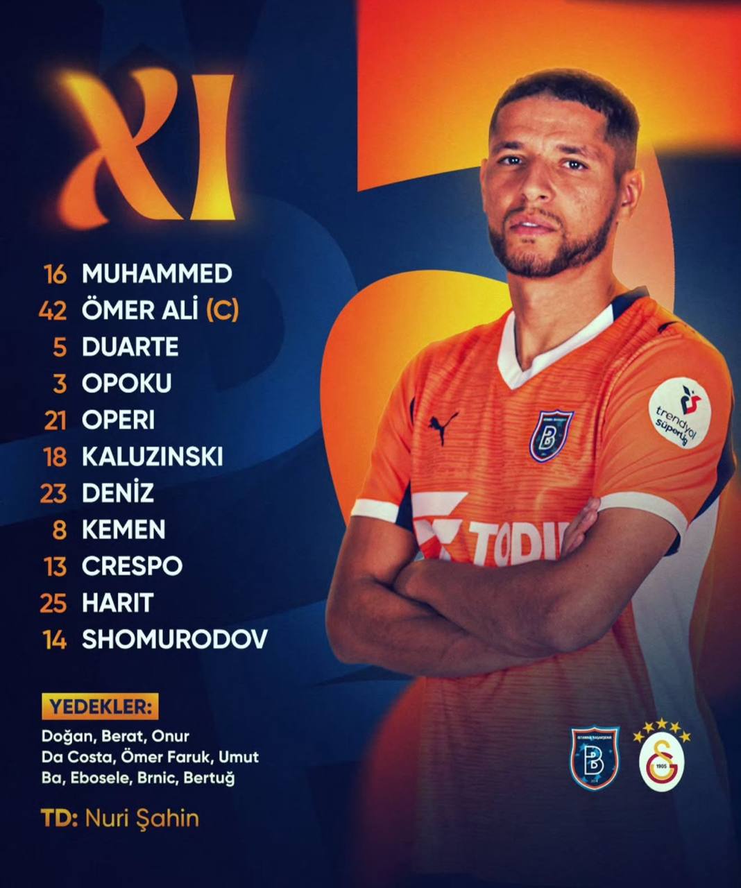 Туркия Суперлигасининг 9-туридан ўрин олган "Истанбул Башакшеҳир" ва "Галатасарой" учрашуви бошланиш арафасида. Мазкур ўйин учун икки клубнинг асосий таркиби маълум бўлди.