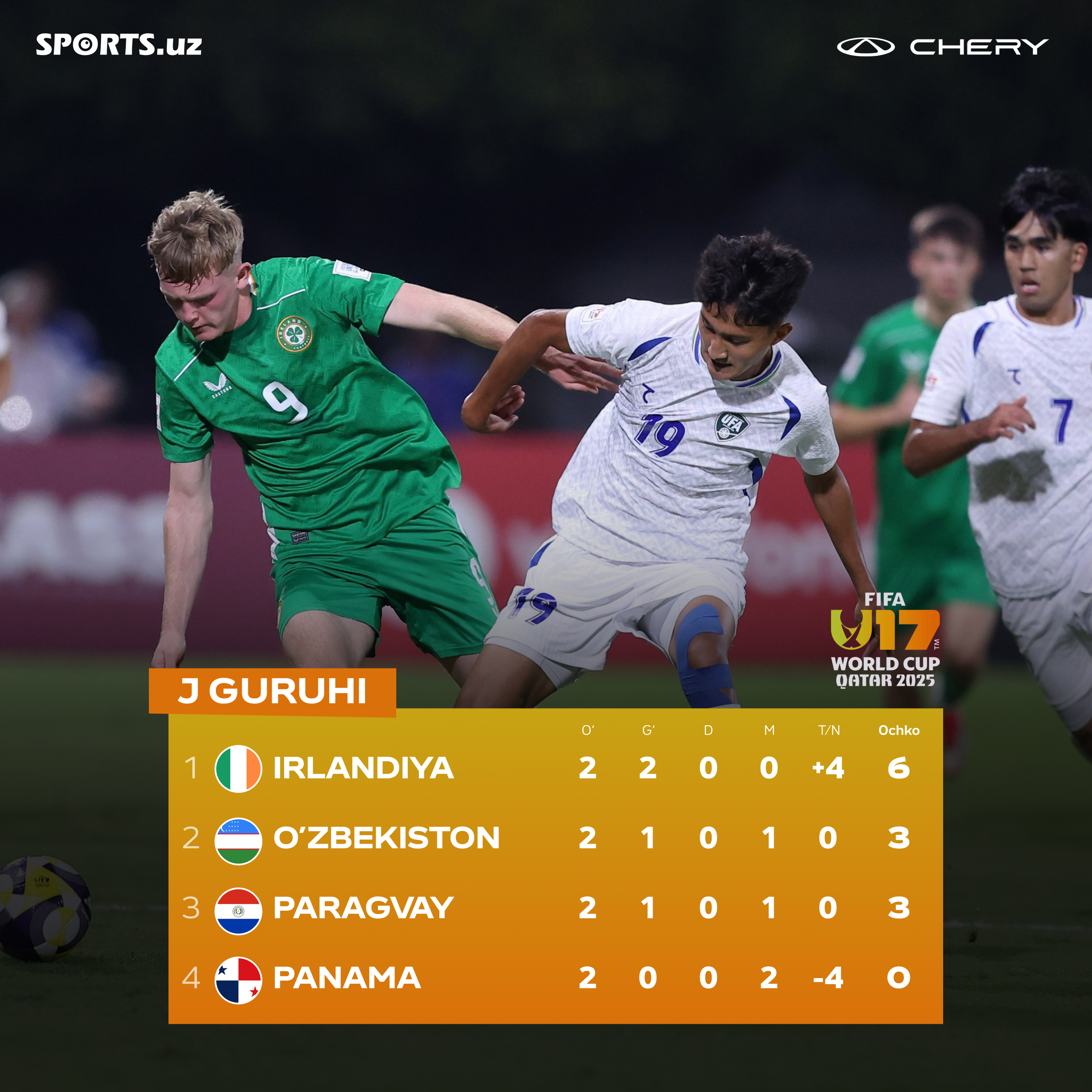 Исломбек Исмоилов бошчилигидаги Ўзбекистон U-17 терма жамоаcи Жаҳон чемпионатининг 2-турида Ирландия билан куч синашиб, 2:1 ҳисобида имкониятни бой берди.