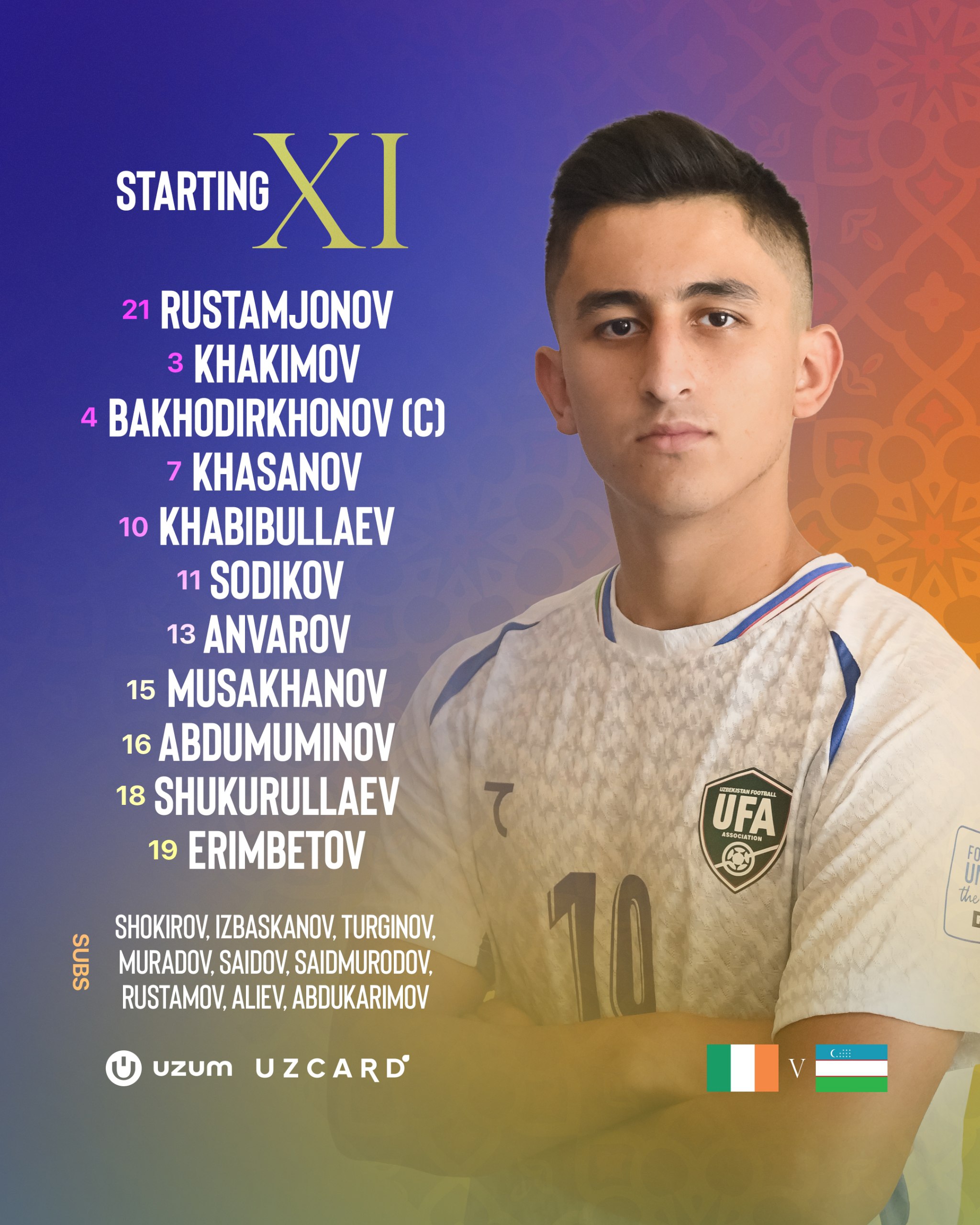Қатар майдонларида бўлиб ўтаётган 17 ёшли футболчилар ўртасидаги жаҳон чемпионати "J" гуруҳидан ўрин олган Ирландия - Ўзбекистон учрашуви учун вакилларимизнинг асосий таркиби эълон қилинди.