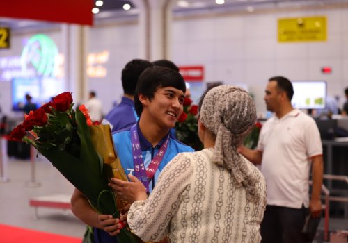 В торжественной встрече, прошедшей в Ташкентском международном аэропорту имени Ислама Каримова, приняли участие заместитель министра Развития спорта, первый заместитель председателя Федерации тяжёлой атлетики Узбекистана Шахрилло Махмудов, заместитель председателя Федерации тяжёлой атлетики Узбекистана Рахмон Холмирзаев и другие официальные лица Федерации, близкие и родные спортсменов. Шахрилло Шарипович поздравил атлетов с достигнутым успехом и пожелал им продолжать достойно представлять новый Узбекистан на предстоящих соревнованиях.