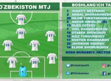Стартовый состав национальной сборной Узбекистана на матч против Южной Кореи