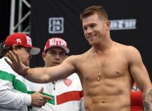 Сауль Альварес ва Билли Жо Сондерс вазн ўлчаш маросимида иштирок этди (Видео)