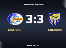 "Машъал" назорат учрашувида "Шердор" билан жанговор дуранг қайд этди